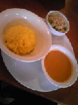 ランチタイムにお邪魔し、,シーフード・ミックスカレーを注文。サラダとドリンクつきです。今回は、マンゴーラッシーにしました。 レディースコースは、小さめのカレーが2種類とこれまた小さなサラダがつき、飲み物、ナンがついて950円。