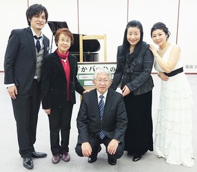終演後、近藤さん、すざかバッハの会会長の大峡喜久代さん、ソプラノの山口清子さんらと礒山雅先生を囲んで・・・の一コマです。
