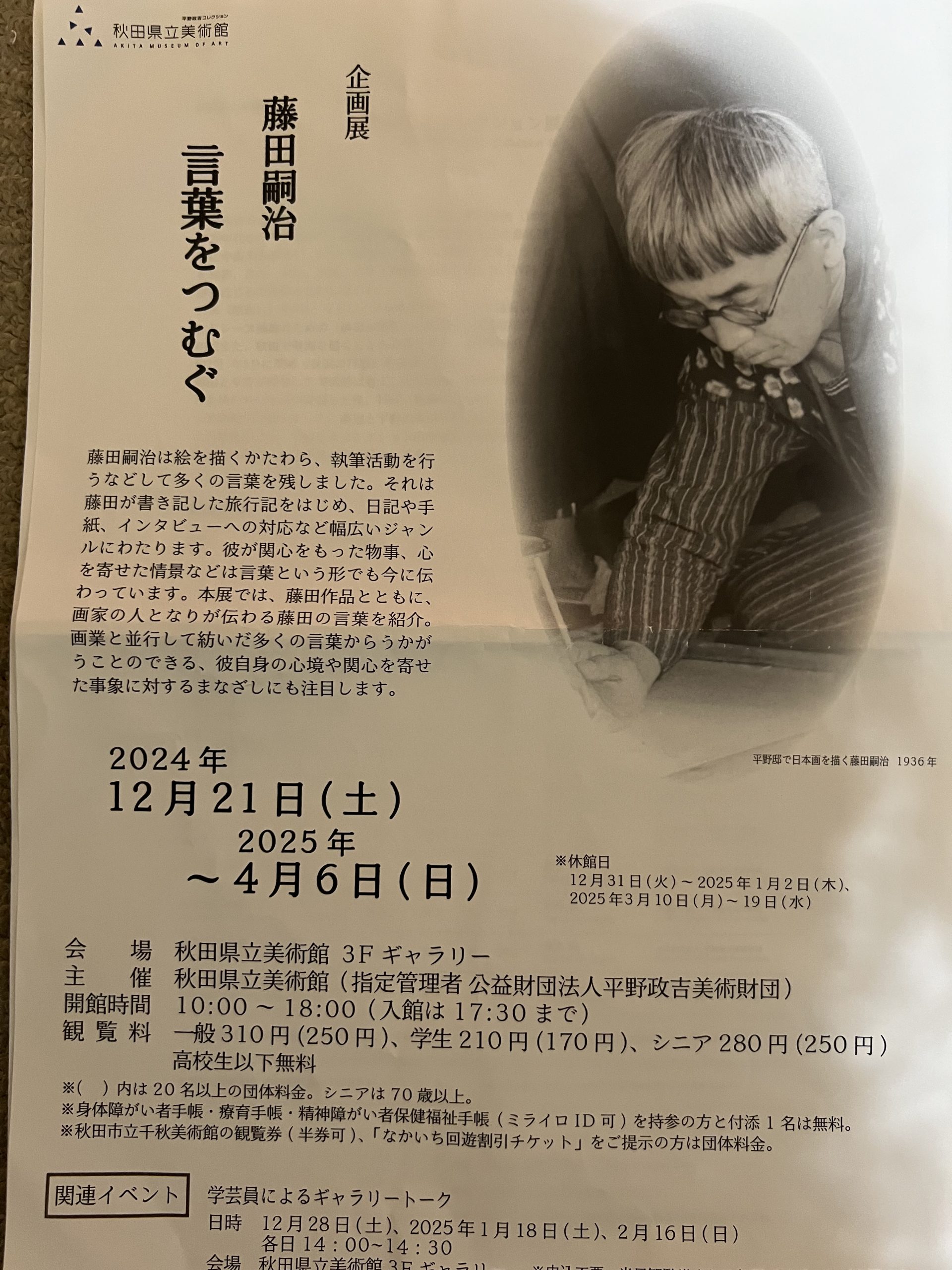 折しも企画展「藤田嗣治ことばをつむぐ」の会期が前日から始まったばかり。