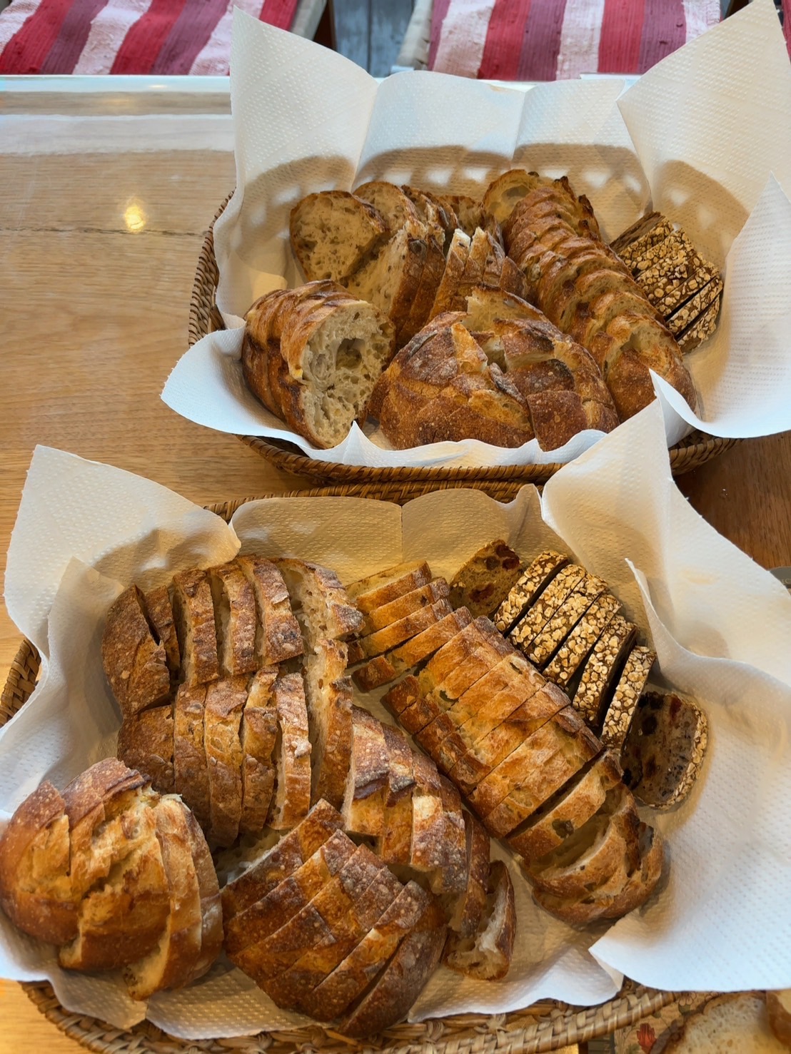 モグモグ部門担当?!の中田恵子さんがご用意くださった「ビストロ モンクール」のフレンチシェフのお料理と「あづみのる」ベーカリーさんのパン!