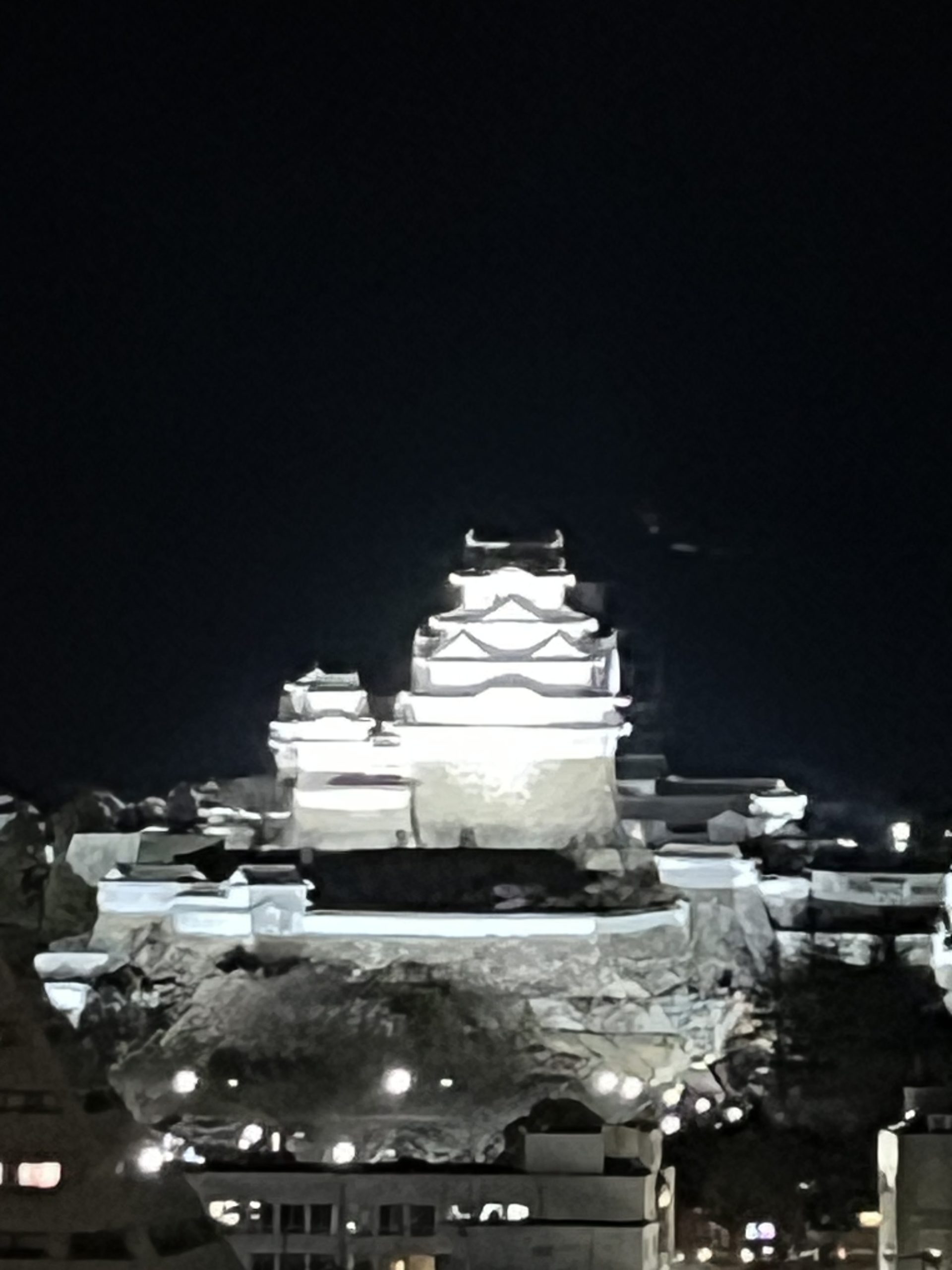 夜は、天守閣のライトアップ!白く浮き上がる幻想の世界!