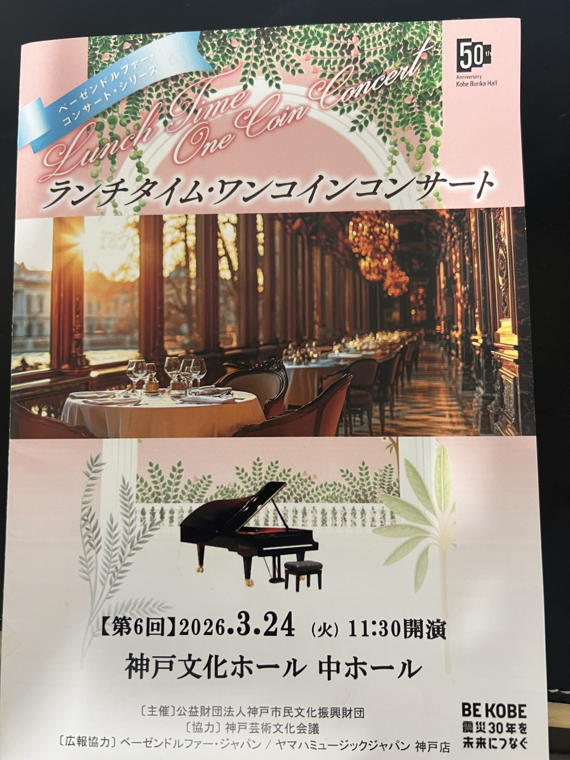 3月24日は、神戸文化ホール(中ホール)へ。11時半からのランチタイム・ワンコインコンサートに伺い、佐野えり子さん、佐野まり子さんの素敵な演奏を聞かせていただきました。