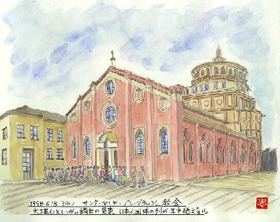 (上の絵は、池阪 忠さんが描かれたサンタ・マリア・デレグラッツェ教会です。池阪さんのサイトでは、イタリアで描かれた美しい風景画をご覧いただけます。)