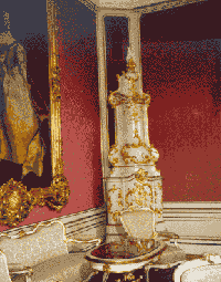 右の写真は、「エリザベートの部屋」と呼ばれている部屋で、最後のオーストリア皇帝の皇后で悲劇の主人公として知られる、エリザベートが寝室として使っていた部屋です。この部屋には、マリア・テレジア女帝の大きな肖像画が掲げられています。